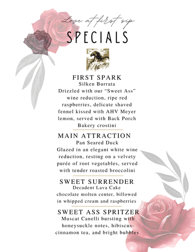 Join us for Love at First Sip, a special Valentine’s Weekend celebration at our tasting room & bistro. Enjoy thoughtfully curated Valentine’s lunch specials, exclusive February wine bundle offerings, and a relaxed afternoon on our beautiful patio overlooking the vineyard; the perfect setting to celebrate love in wine country.